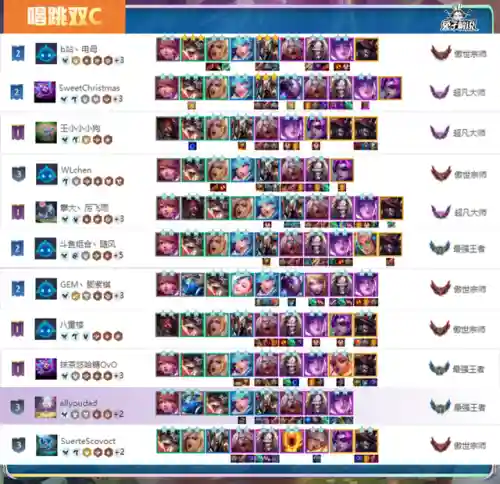 兔子这么多年使用,最好用的就是王者局的实战汇总阵容来排序,每次需要统计几百局,但是真枪实战打出来的阵容,用起来就确实好用,还能找到很多偷分冷门阵容。