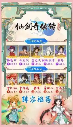 推荐阵容:李逍遥、王小虎、灵月宫主、赵灵儿、任意英雄。这套阵容在游戏中能够带来出色的表现,尤其是在推图过程中。这些英雄在游戏中相对容易获取,有助于玩家快速组建队伍。这套阵容在输出、抗伤、恢复续航等方面都表现出色,能够满足玩家的需求。